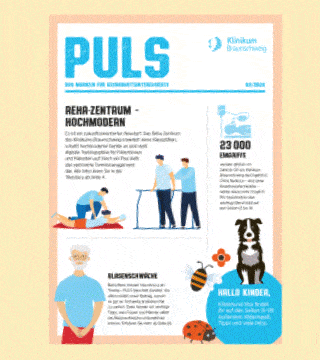 Gut verständliche Beiträge, dazu Grafiken, Videos und Animationen: All das bietet unser E-Magazin PULS auch in seiner neuesten Ausgabe. Lesen Sie mehr über die hochmoderne Bestrahlungstechnik, mit der Krebserkrankte bei uns therapiert werden, über den Komfort, den das neue digitale Patientenportal mit sich bringt und wie die dramatische Flucht einer Ukrainerin aus ihrem Heimatland im Klinikum Braunschweig endete. Auf die Jüngeren wartet Klinikhund Nox – er hat wieder interaktive Rätsel, einen Lesetipp und ein Rezept im Gepäck. Klicken Sie doch einfach rein!